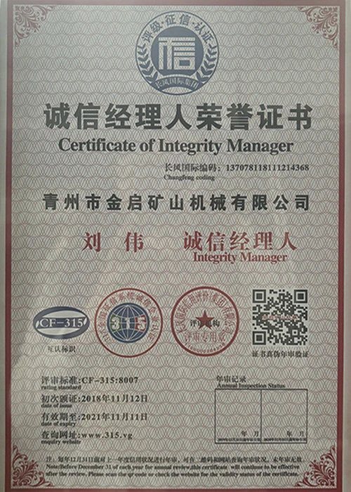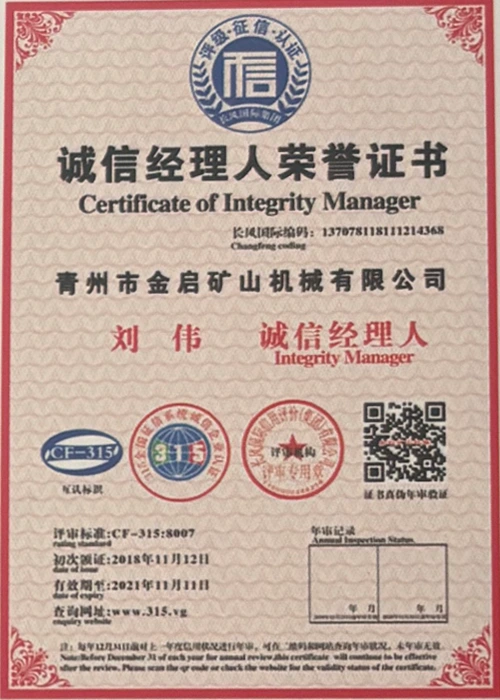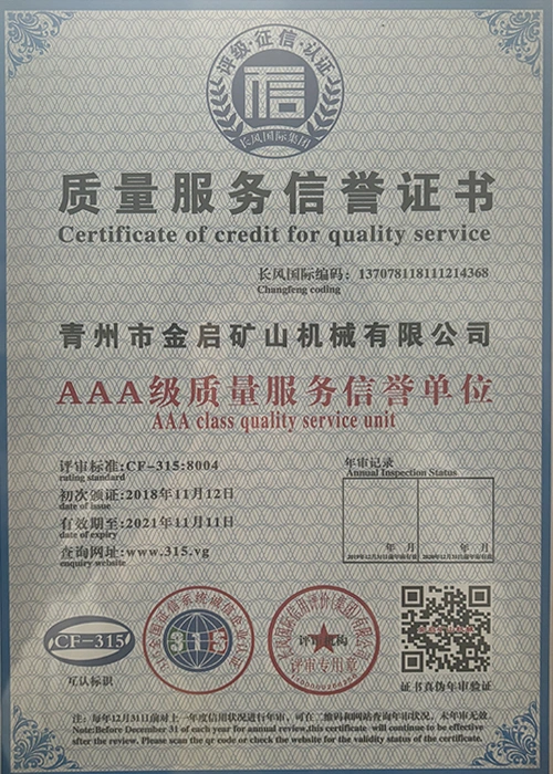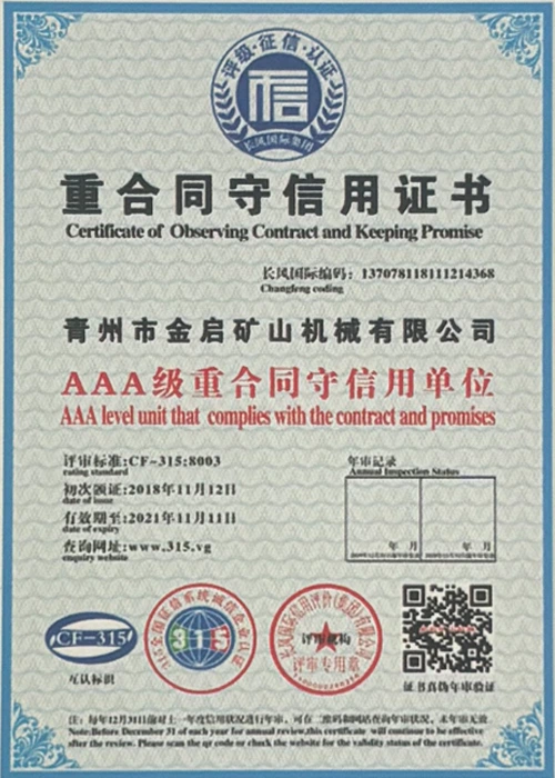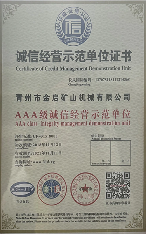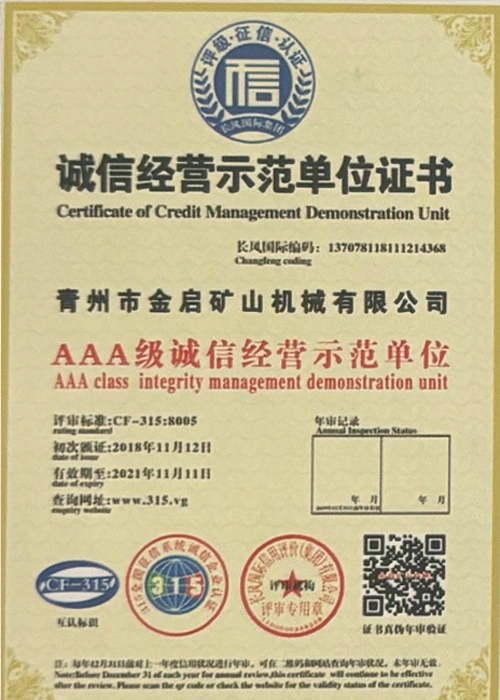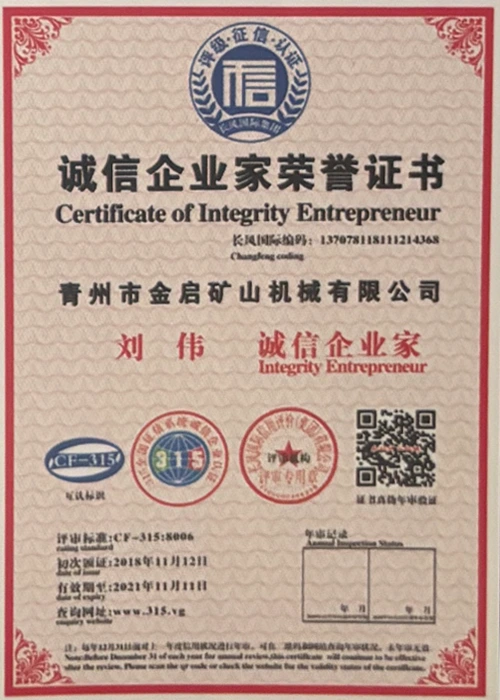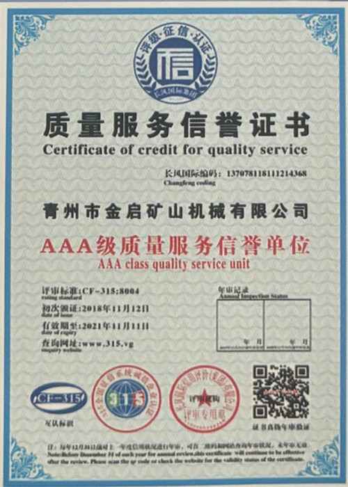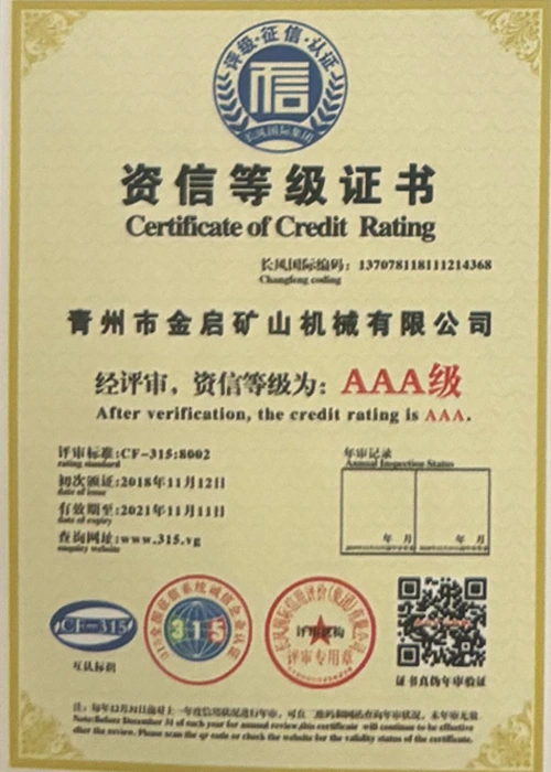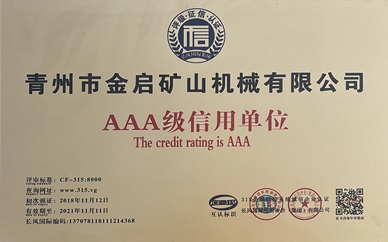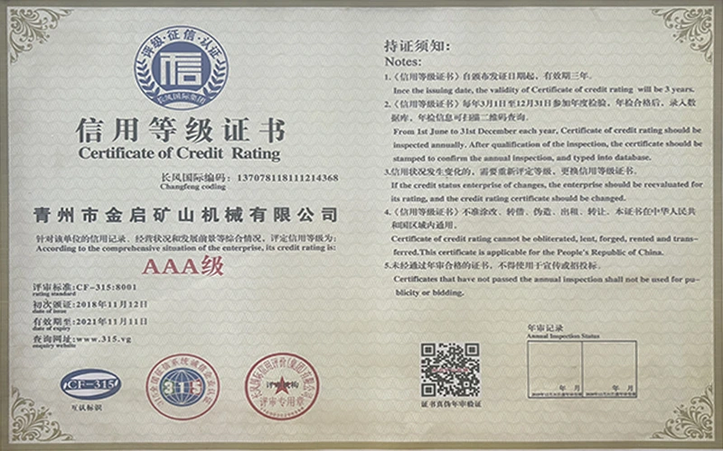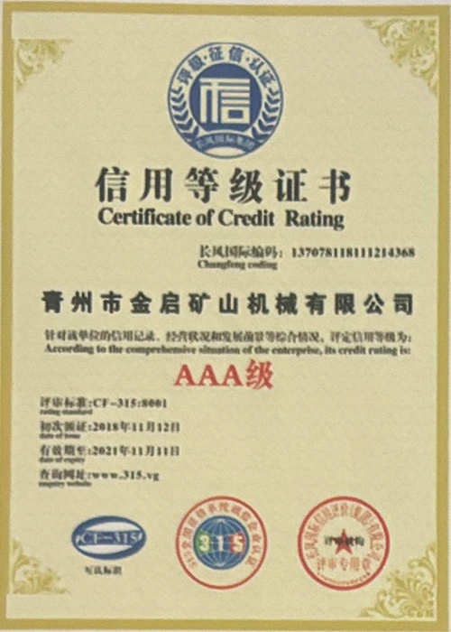 ด้วยประสบการณ์เชิงลึกหลายปีในอุตสาหกรรม โดยอาศัยการควบคุมคุณภาพอย่างเข้มงวดและนวัตกรรมทางเทคโนโลยีอย่างต่อเนื่อง บริษัทได้รับคุณสมบัติที่เชื่อถือได้ การรับรอง และใบรับรองสิทธิบัตรจำนวนมาก รวมถึงการรับรองระบบการจัดการคุณภาพ ISO การรับรองความปลอดภัยของผลิตภัณฑ์เหมืองแร่ ตลอดจนสิทธิบัตรการประดิษฐ์หลายรายการและสิทธิบัตรแบบจำลองอรรถประโยชน์สำหรับการเพิ่มประสิทธิภาพโครงสร้างอุปกรณ์และการอัปเกรดเทคโนโลยีประหยัดพลังงาน แสดงให้เห็นถึงความแข็งแกร่งทางเทคนิคที่ลึกซึ้งและการรับประกันการผลิตที่เป็นไปตามข้อกำหนด