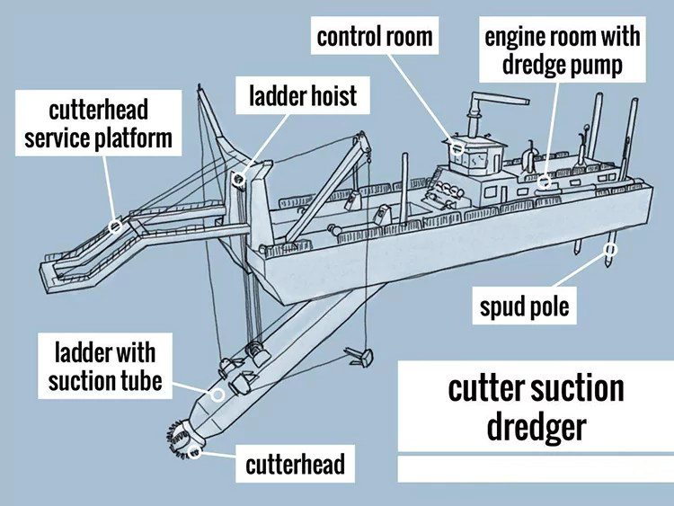 โครงสร้างหลักประกอบด้วยระบบเครื่องตัด ระบบดูดและระบาย ระบบกำหนดตำแหน่งและการเคลื่อนที่ และระบบไฟฟ้า ซึ่งช่วยให้สามารถดำเนินการ "ขุด-ลำเลียง-ขนถ่าย" แบบบูรณาการ มีการใช้กันอย่างแพร่หลายในโครงการขุดลอกและการถมทะเลในแม่น้ำ